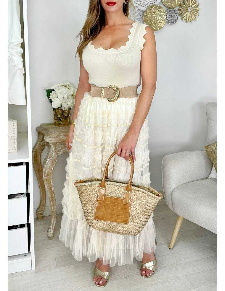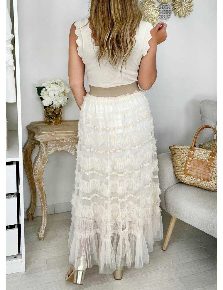 ☆ Jupon beige , tout en tulle et froufrou, doublée et taille élastique, elle se porte droite.