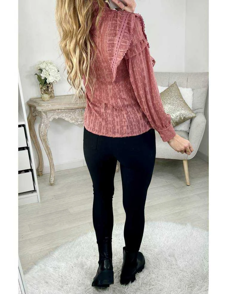 ☆ Blouse » vieux rose » et liserés dorés, jolis volants brodés, elle se porte droite.