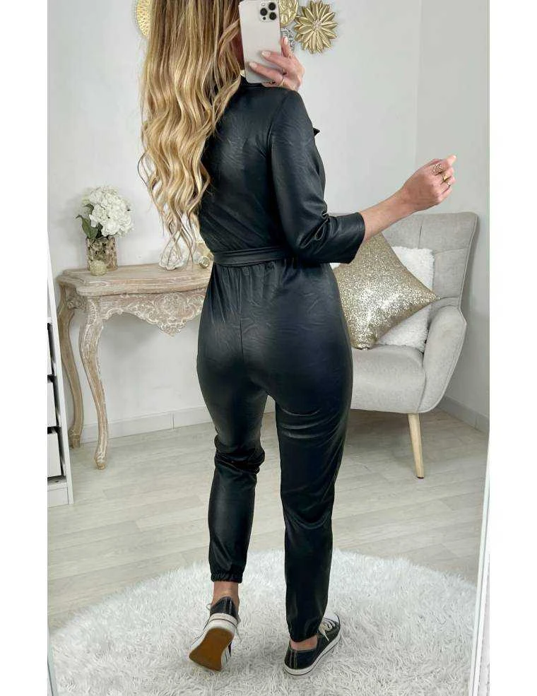 ☆ Combi pantalon noire style cuir, se ferme par un zip, ceinture à nouer, elle se porte ajustée