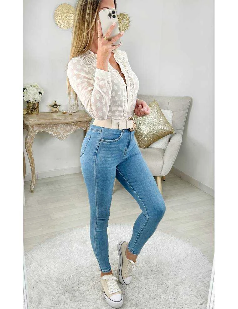 ☆ chemisier cream en voilage texturé, buste brodé, col petits volants, il se porte droit.