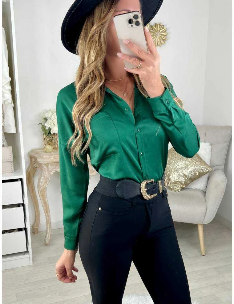 ☆ Chemisier fluide vert , entièrement boutonné,il se porte droit ou ajusté dans un short ou pantalon