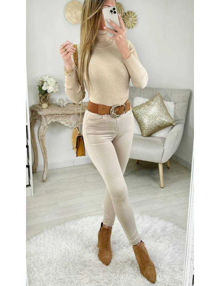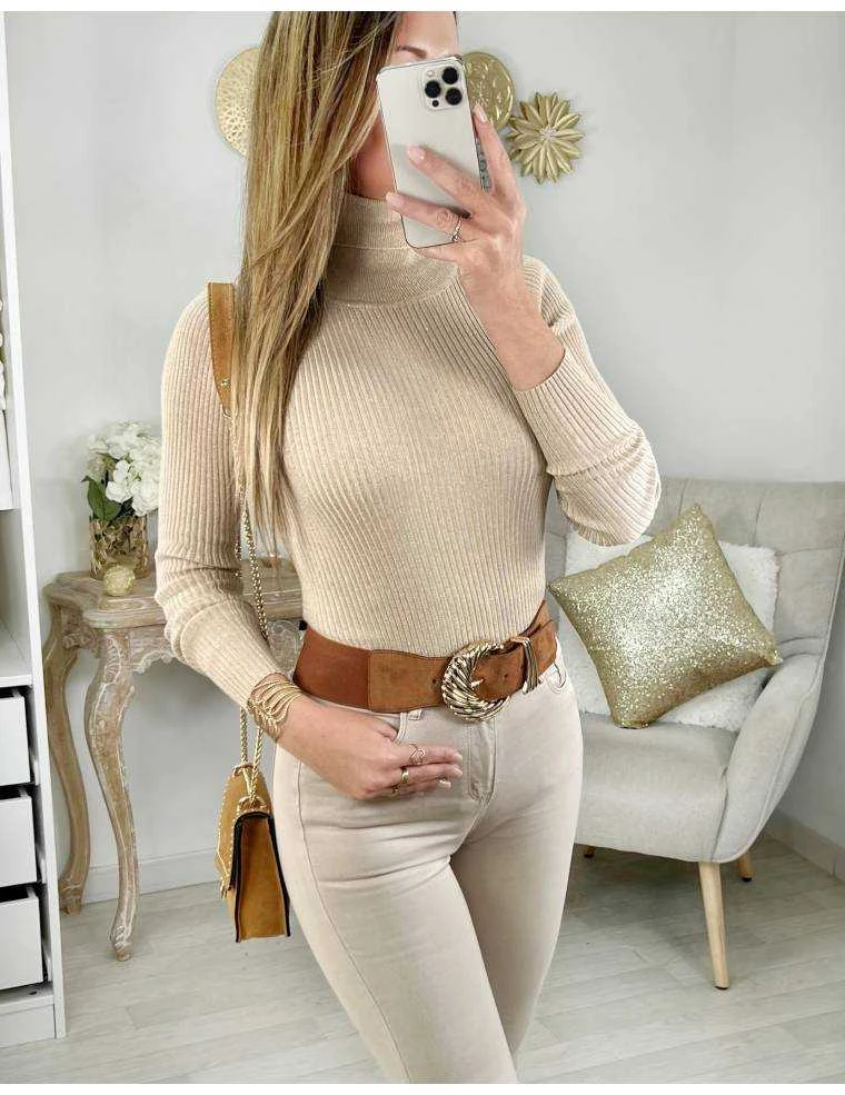 ☆ Pull côtelé caramel scintillant, manches longues il se porte ajusté.