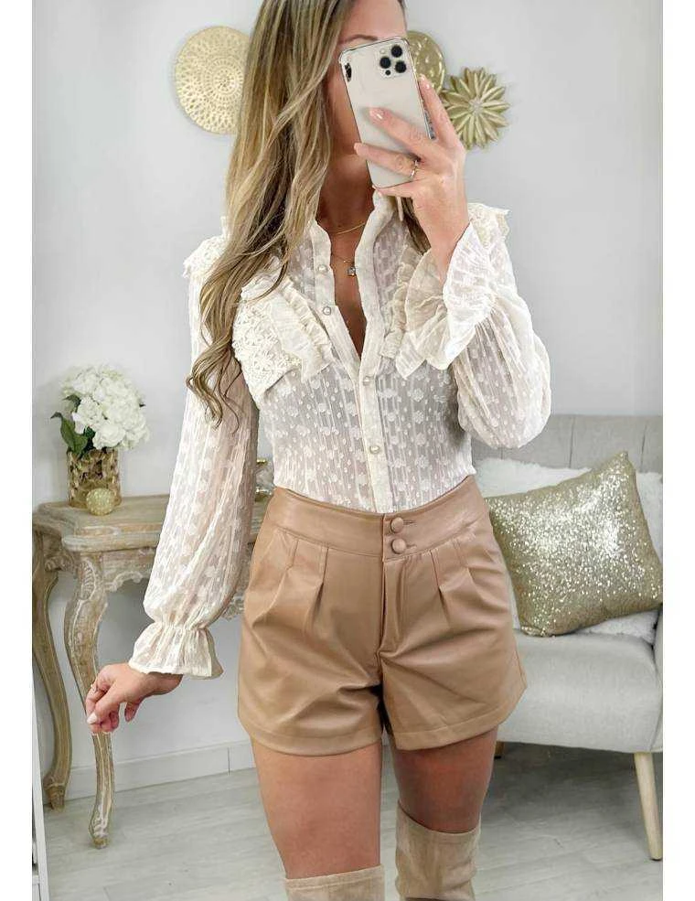 ☆ Short style cuir caramel, se ferme par un zip et deux boutons,il se porte droit .