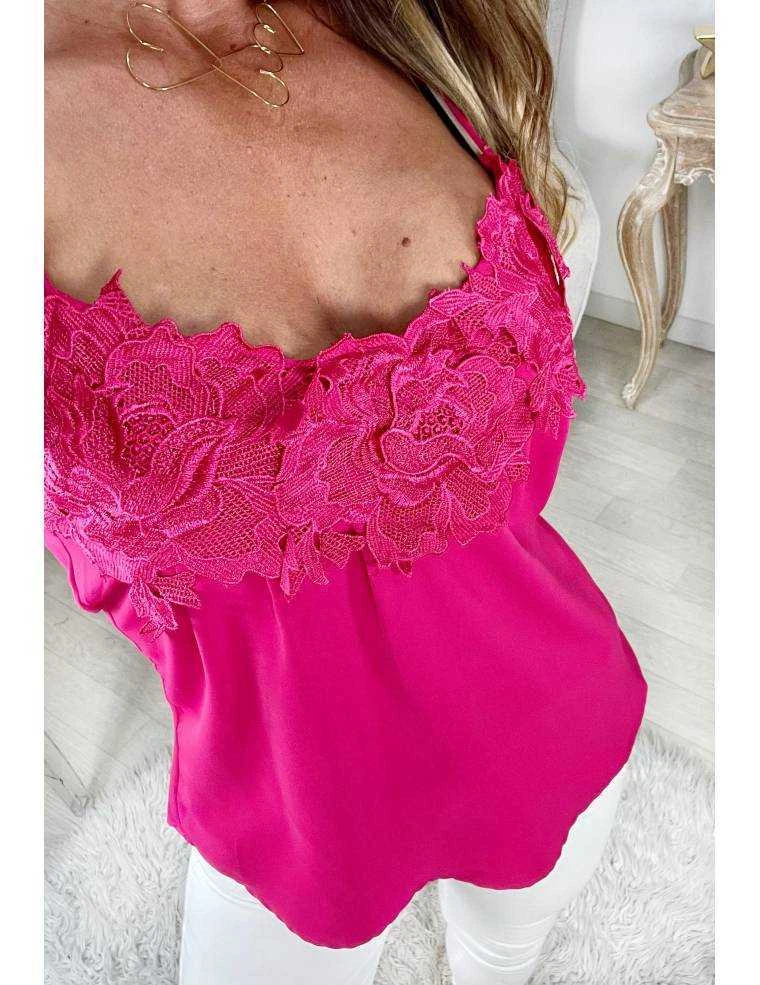 ☆ Top fuchsia fines bretelles élastiques, et buste brodé.