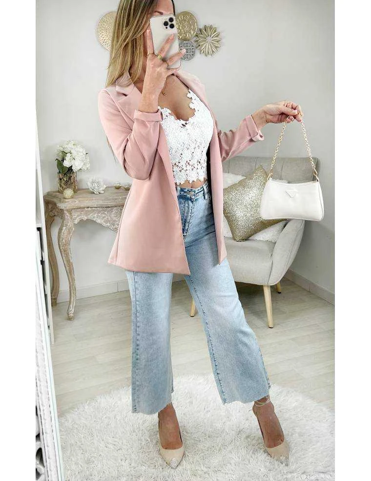 ☆ Top blanc tout en broderie, fines bretelles réglables, préformes en mousse, il se porte ajusté