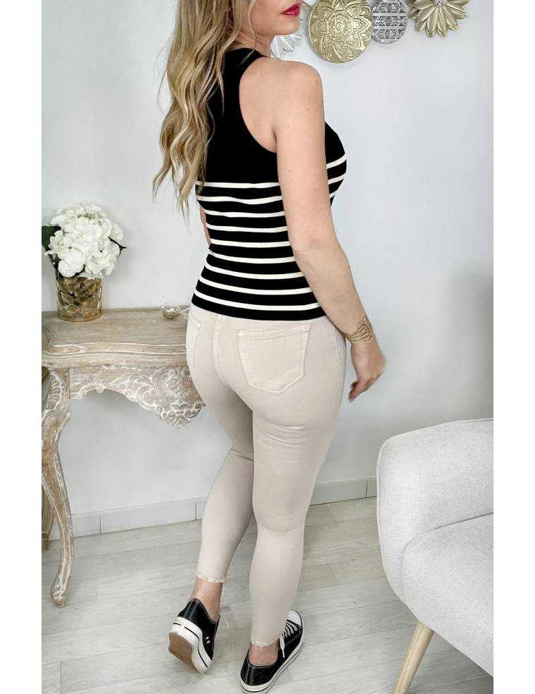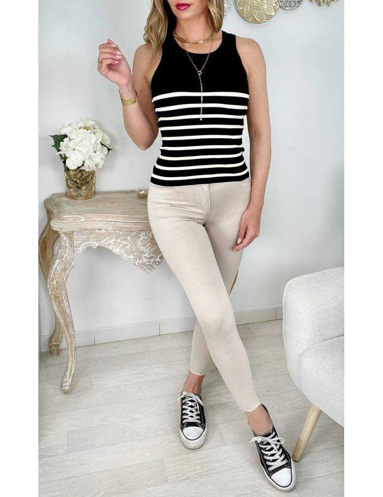 ☆ top côtelé noir et blanc style marinière,larges bretelles, il se porte ajusté.