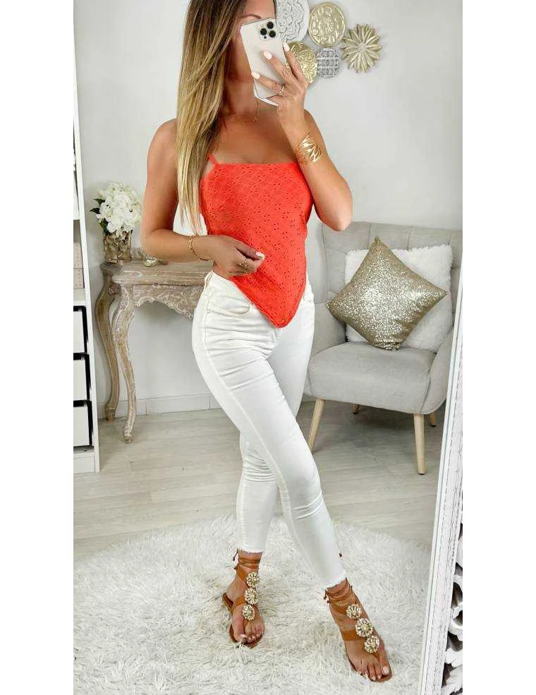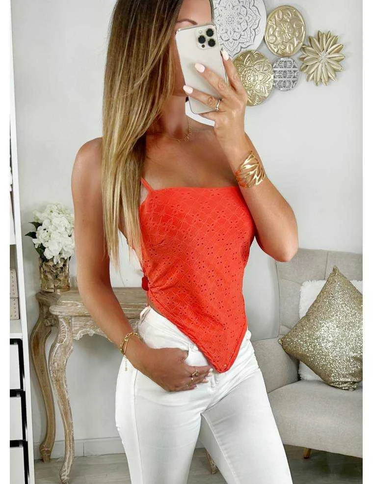☆ Foulard en broderie orange à nouer dans le dos et fines bretelles élastiques