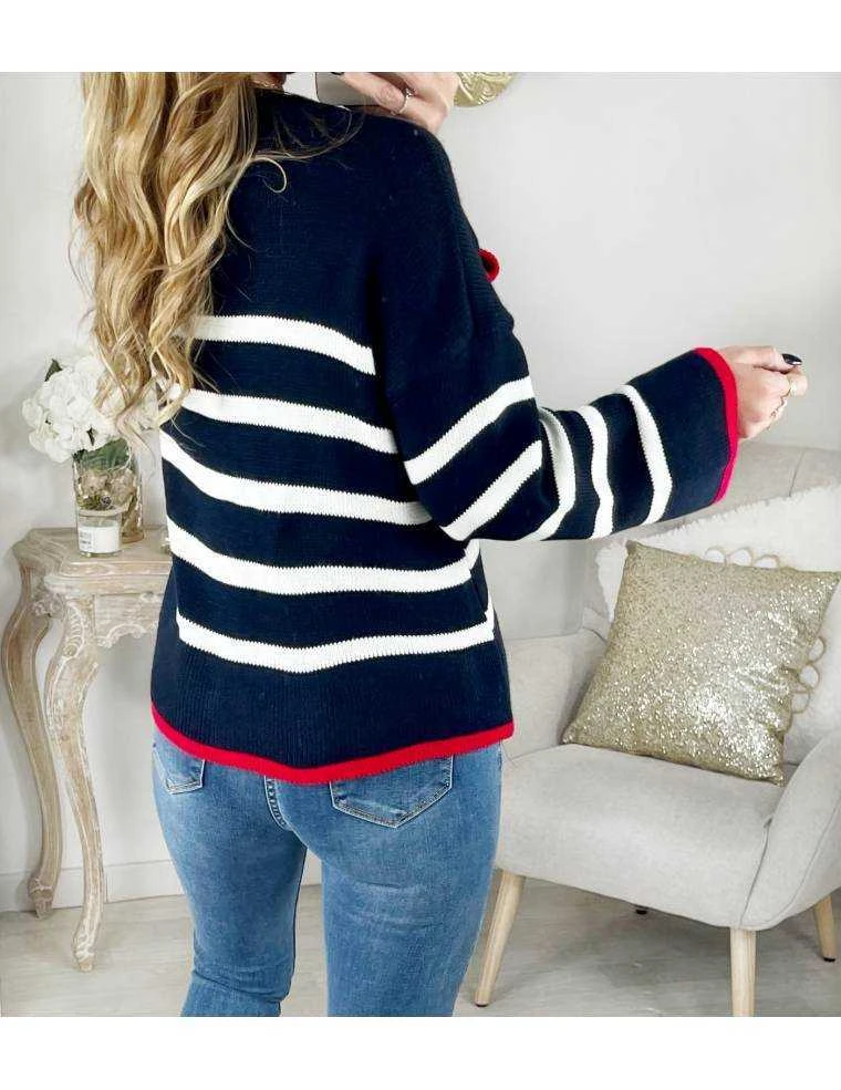 Pull En Maille Marin Loose « blue & Red »
